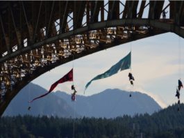 阻油輪 綠色和平懸空搭「人肉吊橋」
